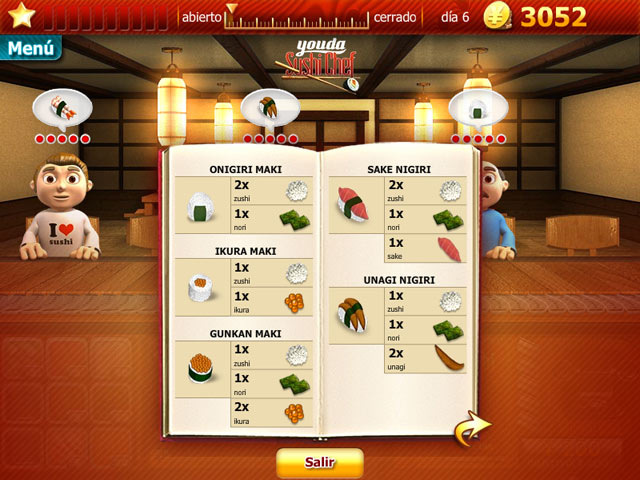 Construye un gran imperio a base de preparar las más asombrosas recetas de Sushi. Youda Sushi Chef te reta a convertirte en el mayor experto de Sushi del mundo. Decora y mejora tu restaurante, prepara nuevas recetas, aprende trucos de cocina y sirve delicioso sake para tener felices a tus clientes mientras esperan a ser atendidos. ¡Domina el arte del Sushi en este emocionante juego de Gestión del Tiempo!